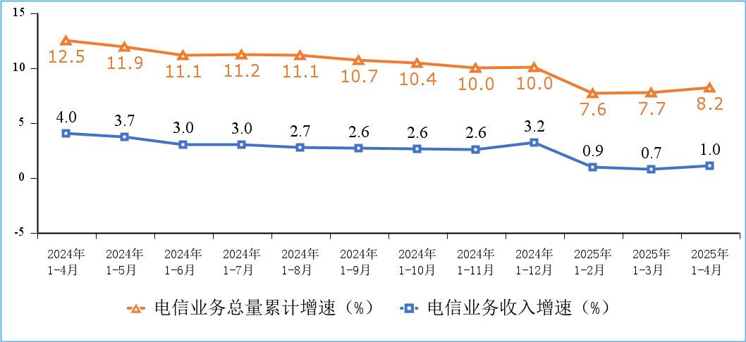 前4个月,我国通信业运行稳中有升。电信业务量收增速小幅回升,移动互联网接入流量保持较快增长,5G、千兆光网、物联网等新型信息基础设施建设稳步推进。